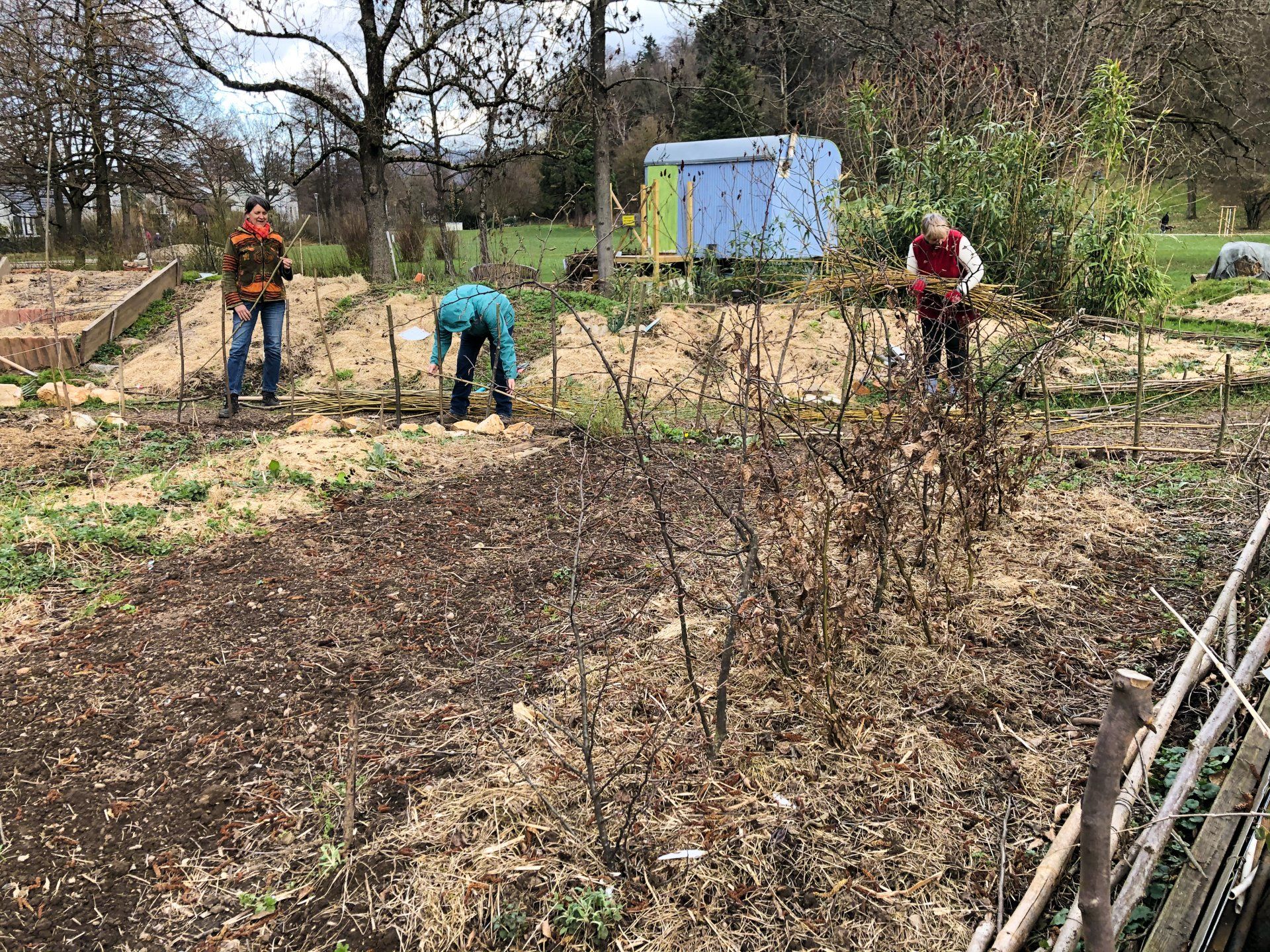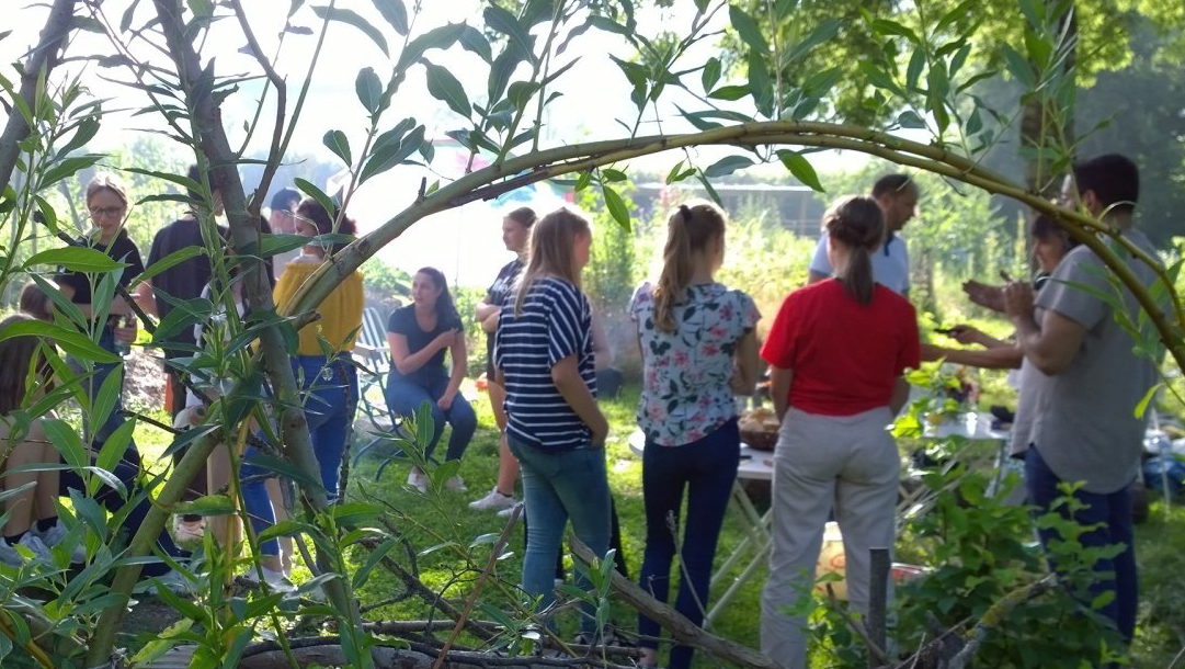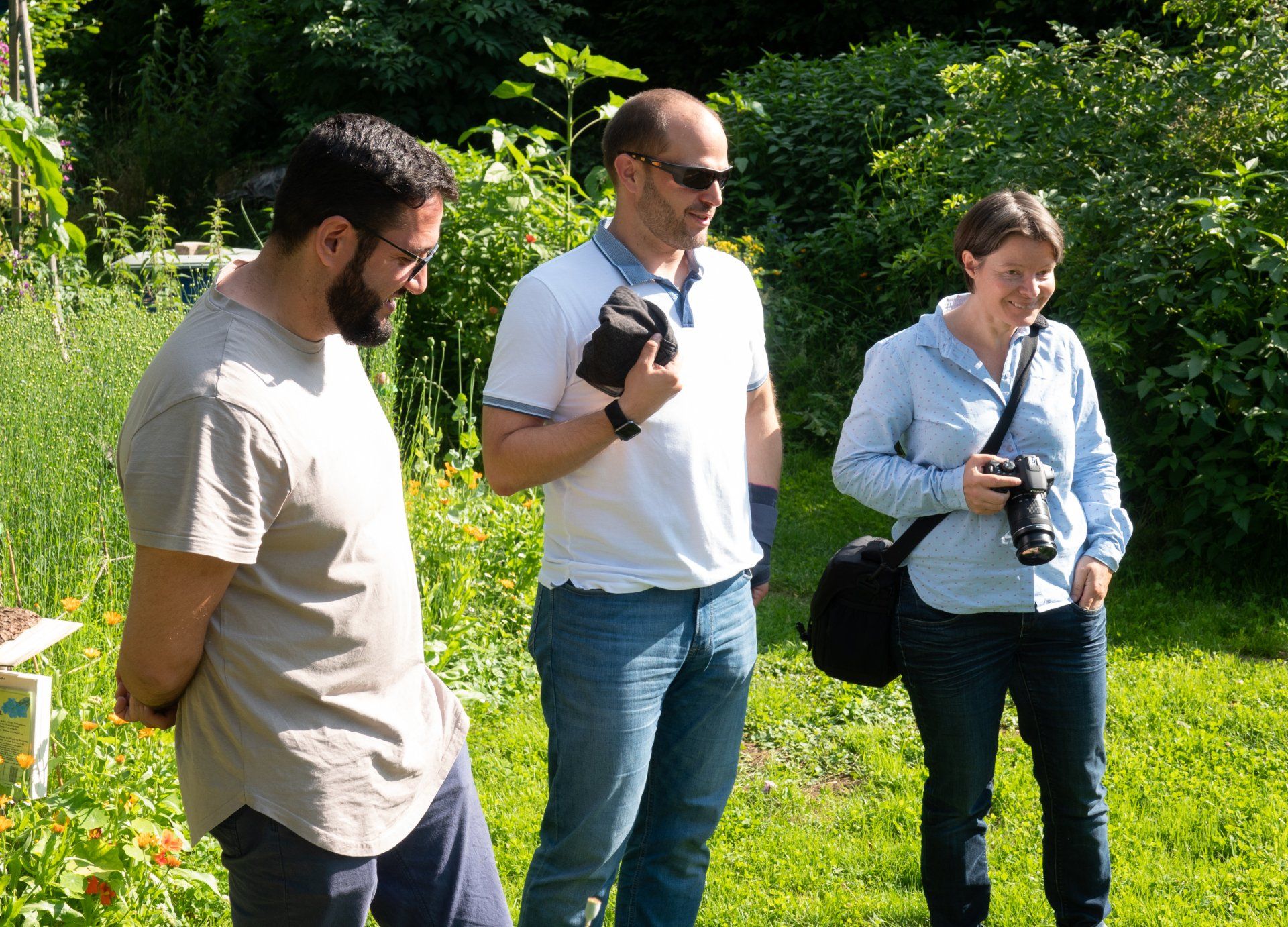 Der Buchholzer Bio-Winzer Berthold Nopper hat in einer wunderbaren Gemeinschaftsaktion vier unterschiedliche Rebsorten im Mitmach-Garten gepflanzt, das gesellige Verkosten seiner hervorragenden Bioweine und des Johanniter-Sektes inclusive. Wir sagen ein beschwingtes Dankeschön, lieber Berthold und liebe Neli!