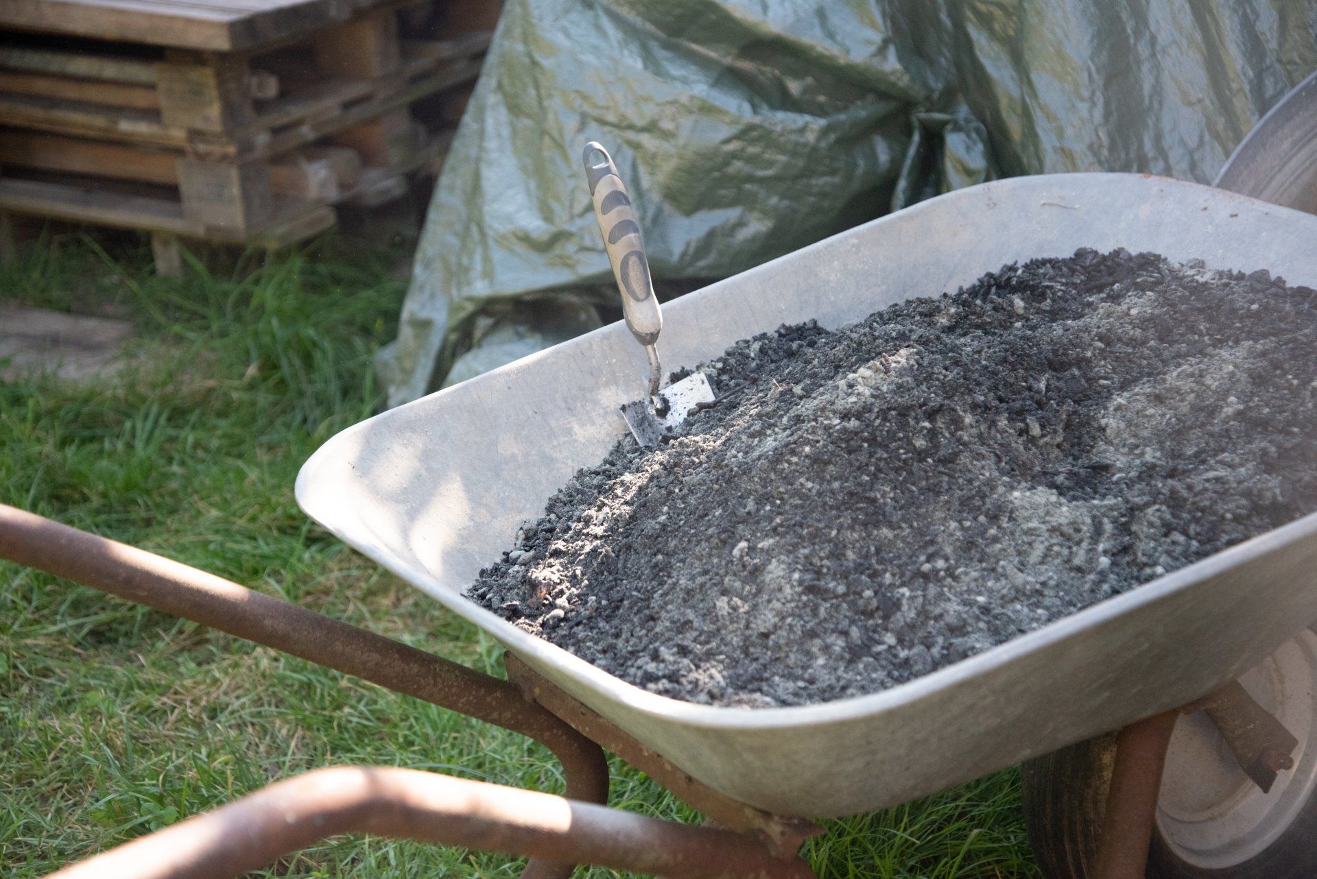 - Komposthaufen gut feststampfen, gießen und gut abdecken, rundherum mit Folie beschweren
