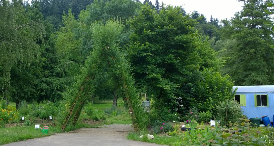 könnt Ihr "Baumkronenweg Waldkirch" eingeben. Dann führt Euch das Navi genau zum Parkplatz und an das Informationsschild. Dort gegenüber ist der Eingang zum Mit-Mach-Garten.
