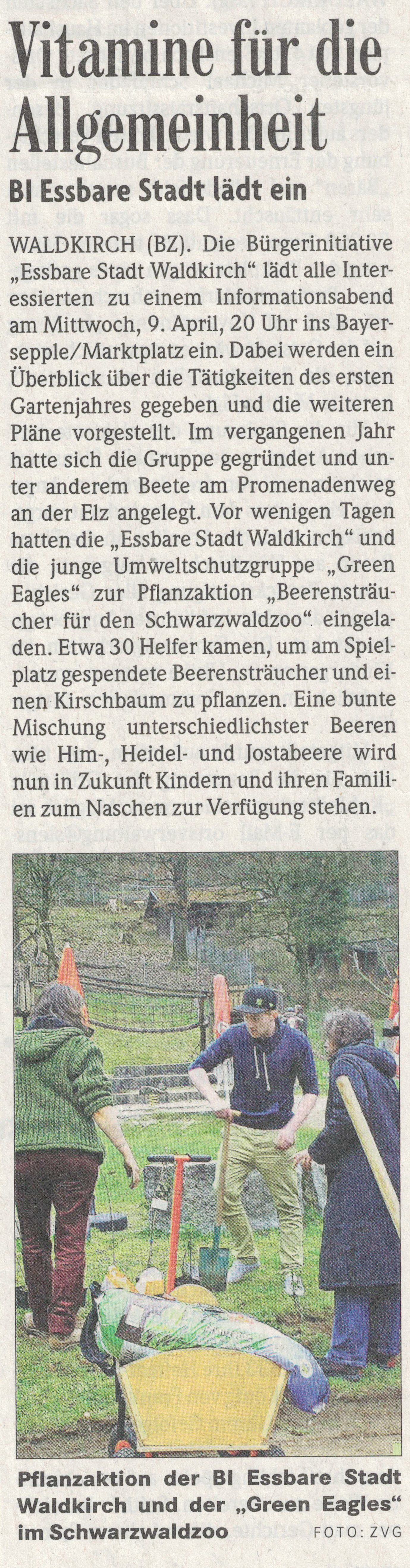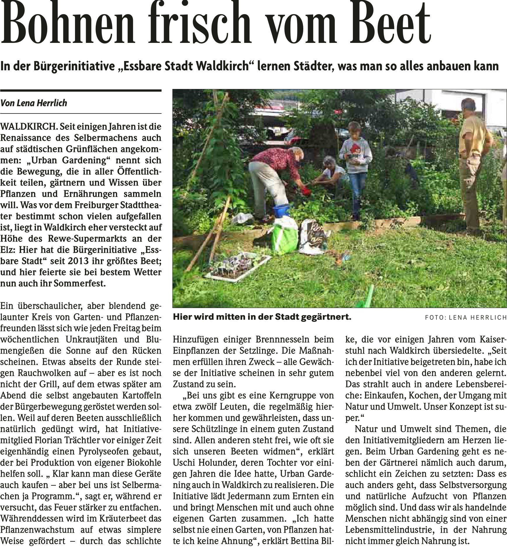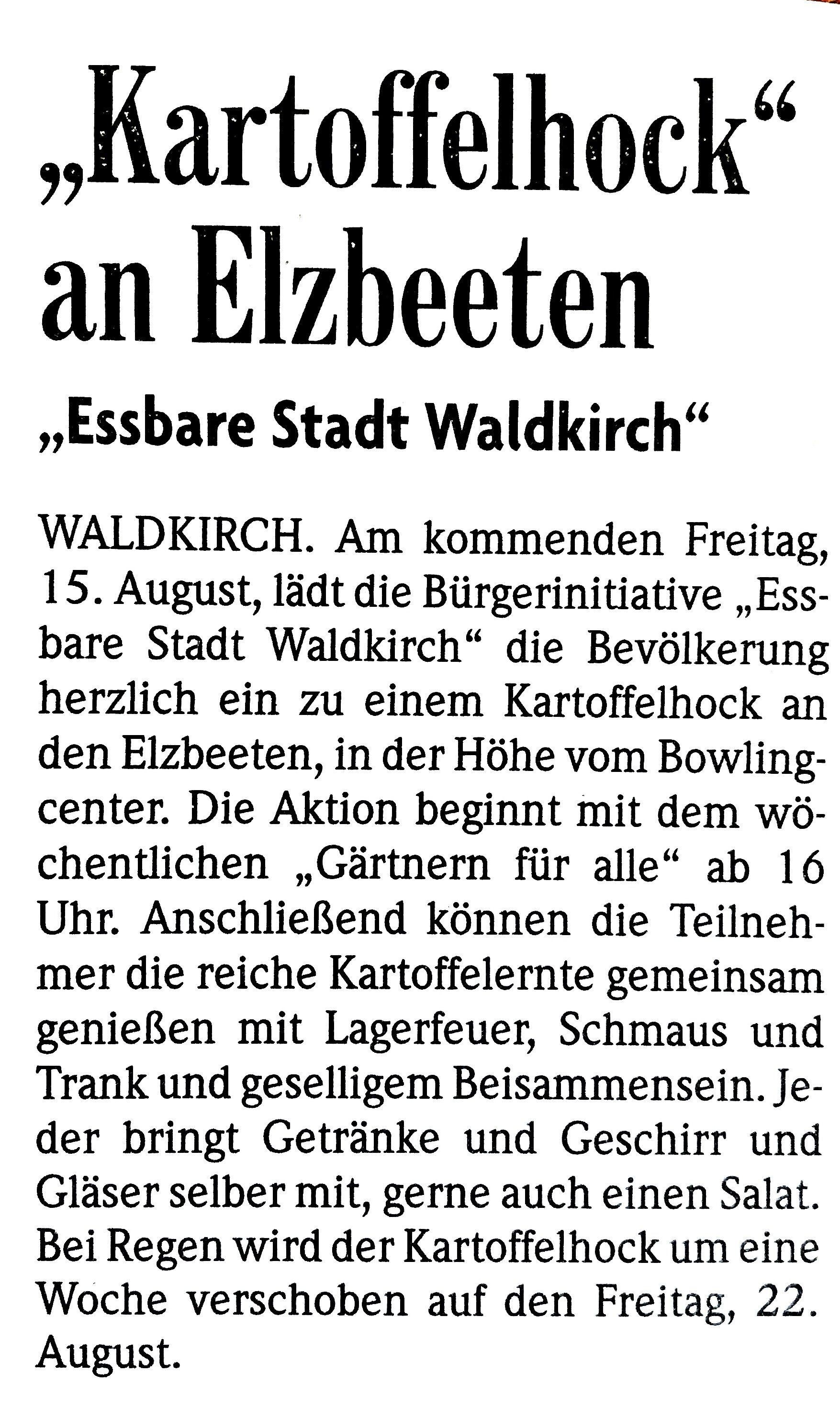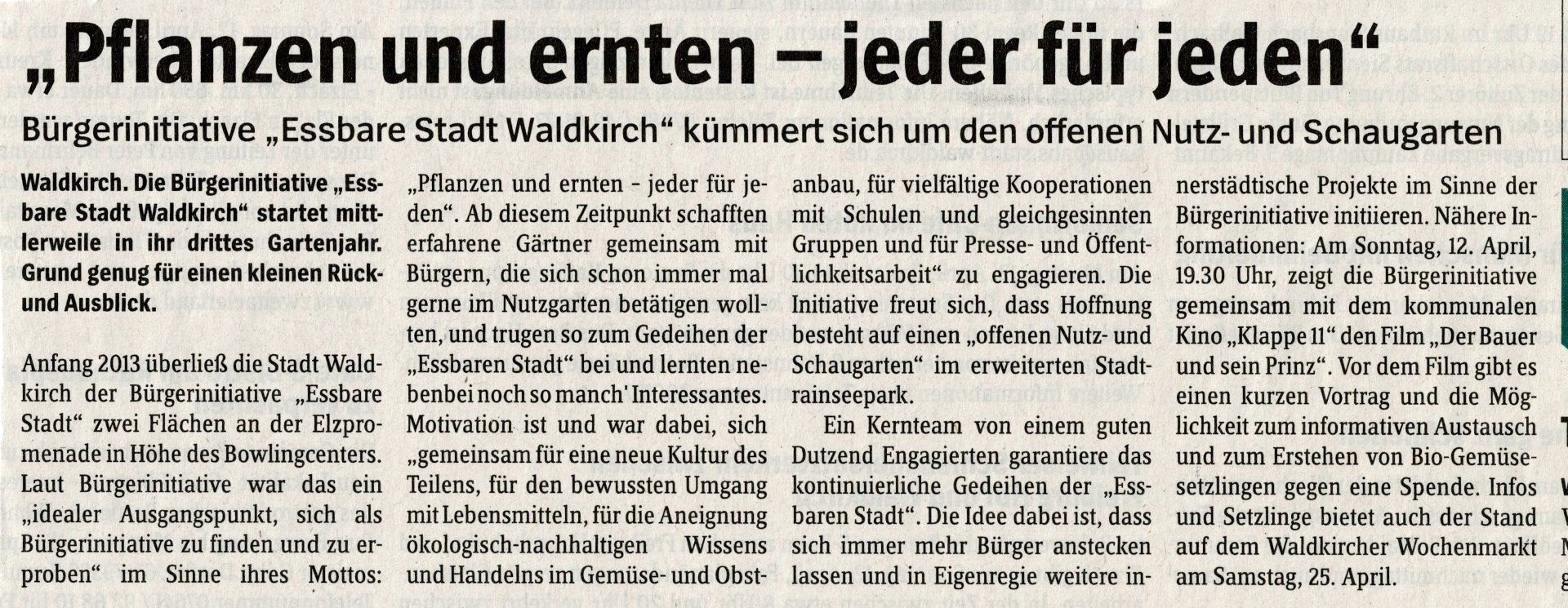 Bürgerinitiative "Essbare Stadt Waldkirch", Elztäler Wochenbericht 2013