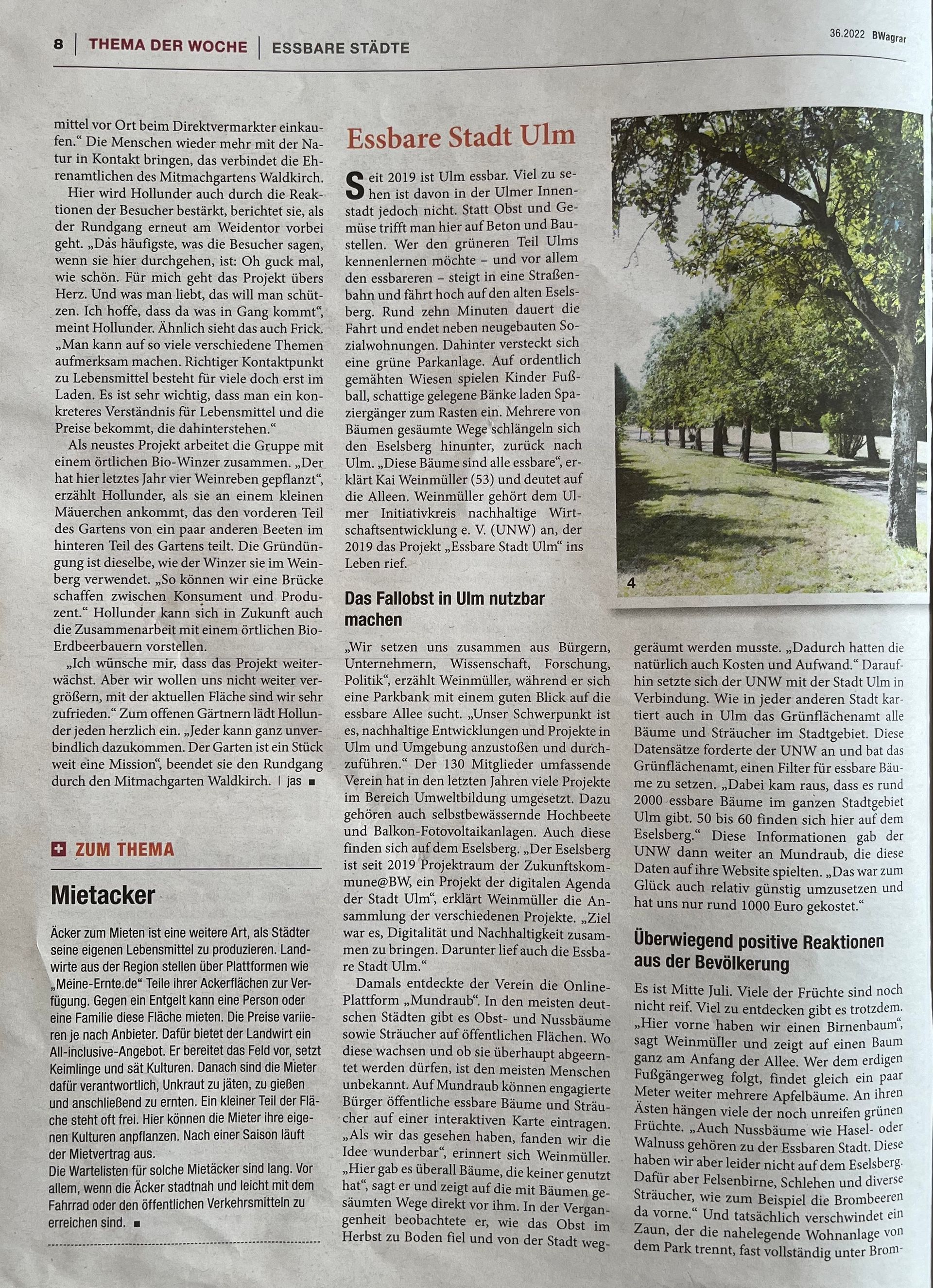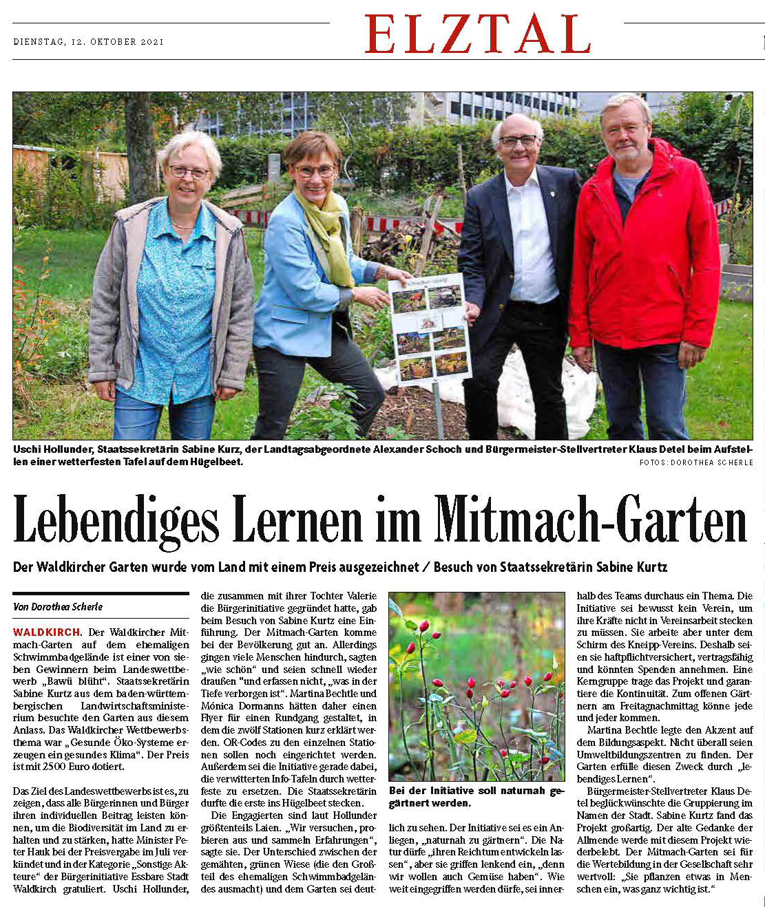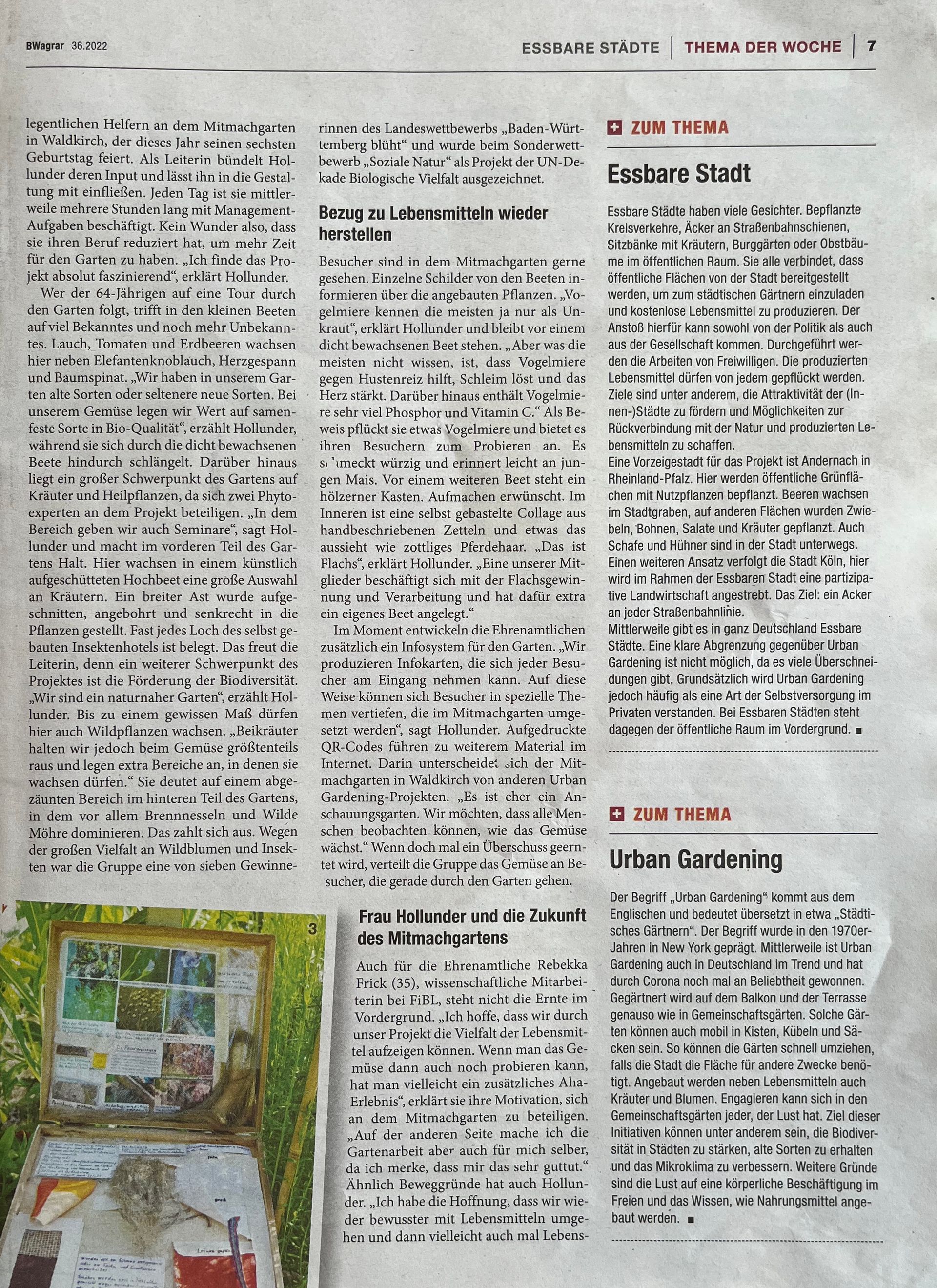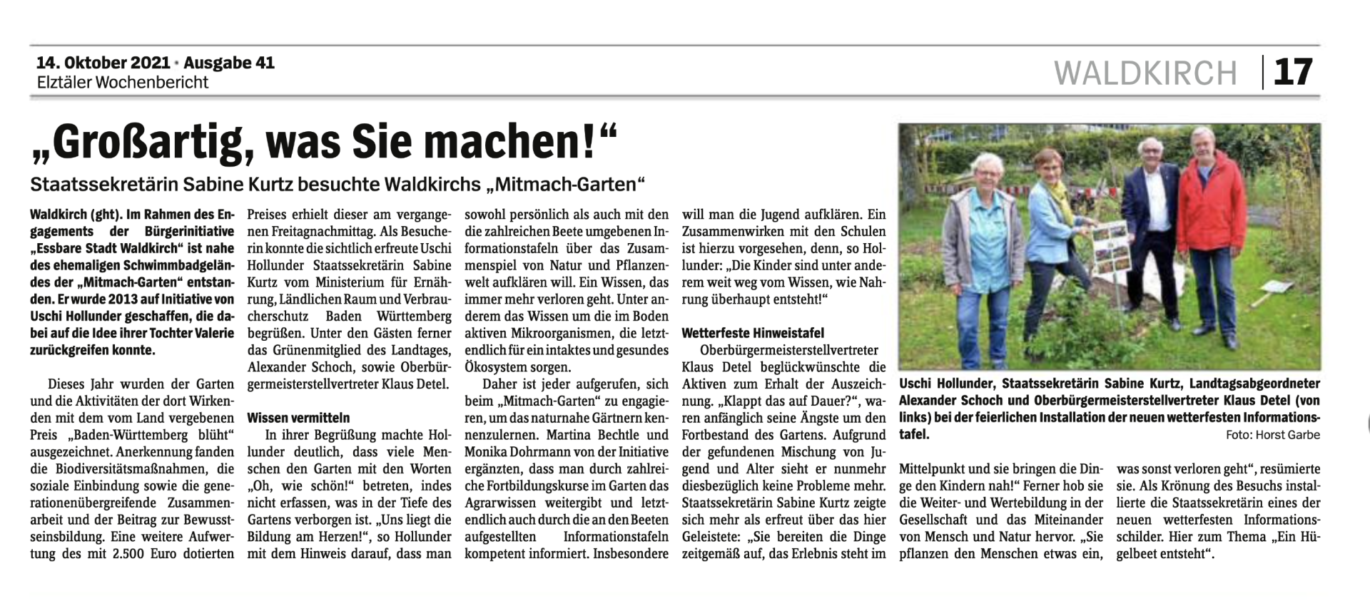 Bürgerinitiative "Essbare Stadt Waldkirch", Elztäler Wochenbericht 2013