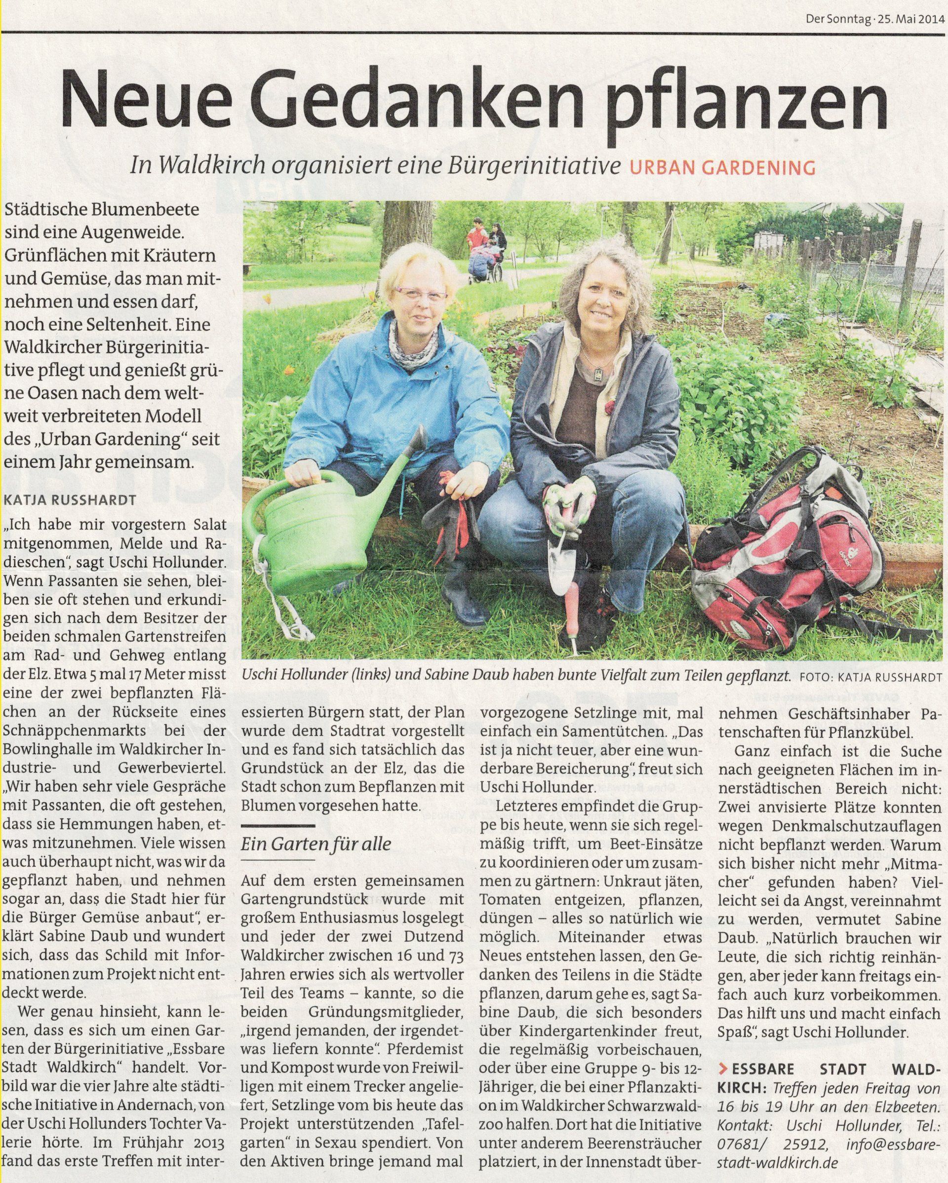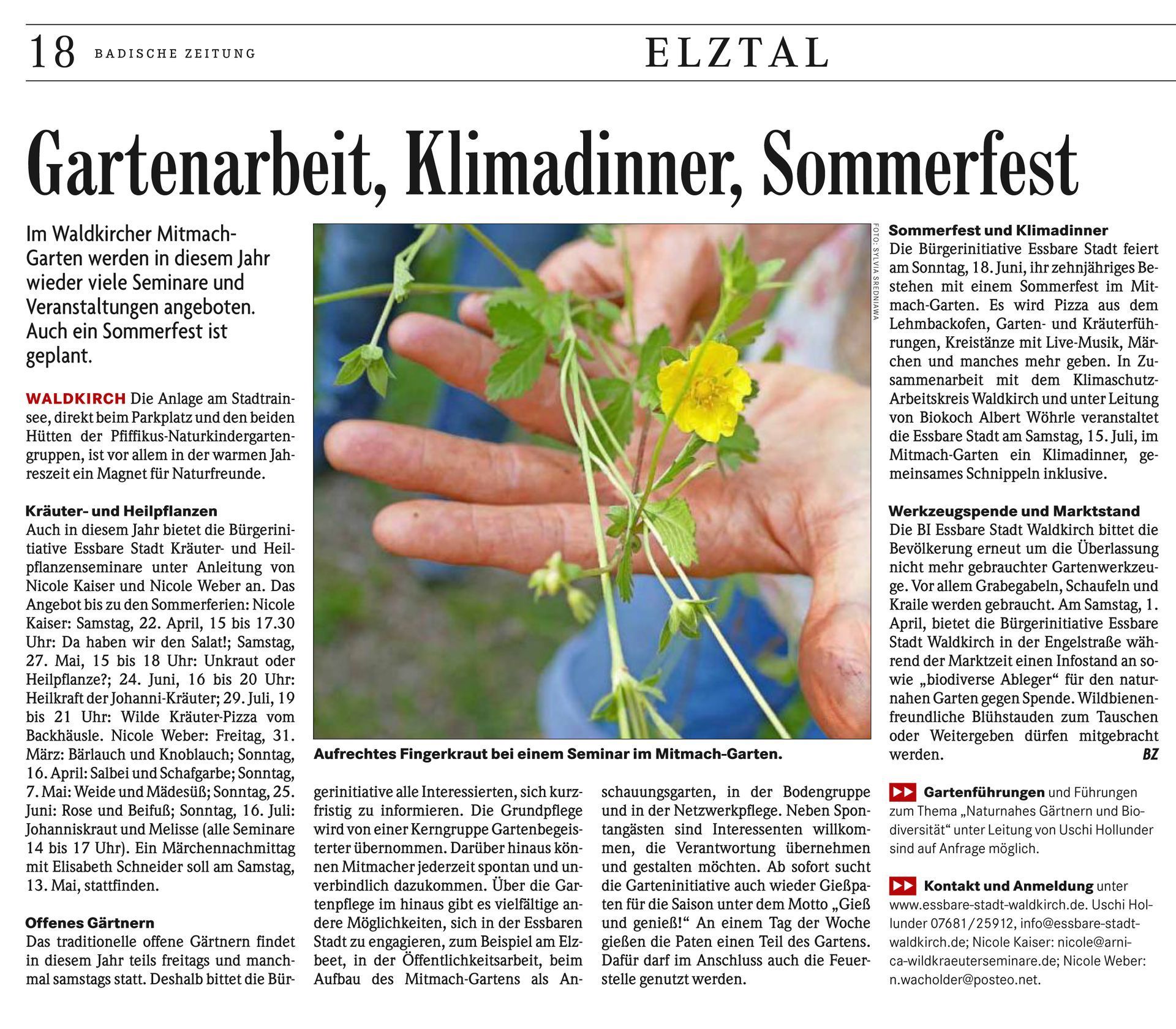 Jetzt geht das Gärtnern los, BZ 10.05.2018