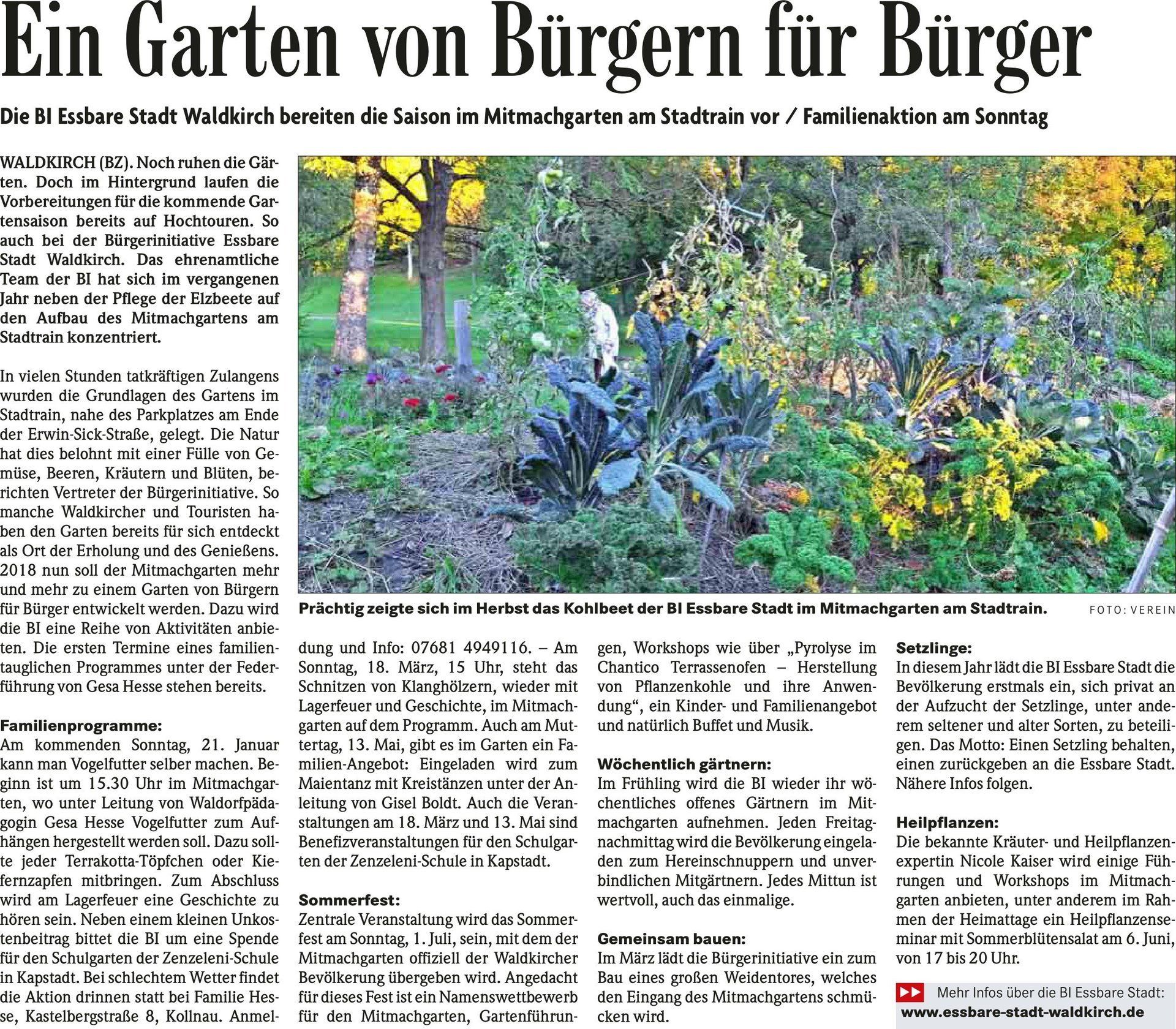 Ein Garten von Bürgern für Bürger, BZ 17.01.2018