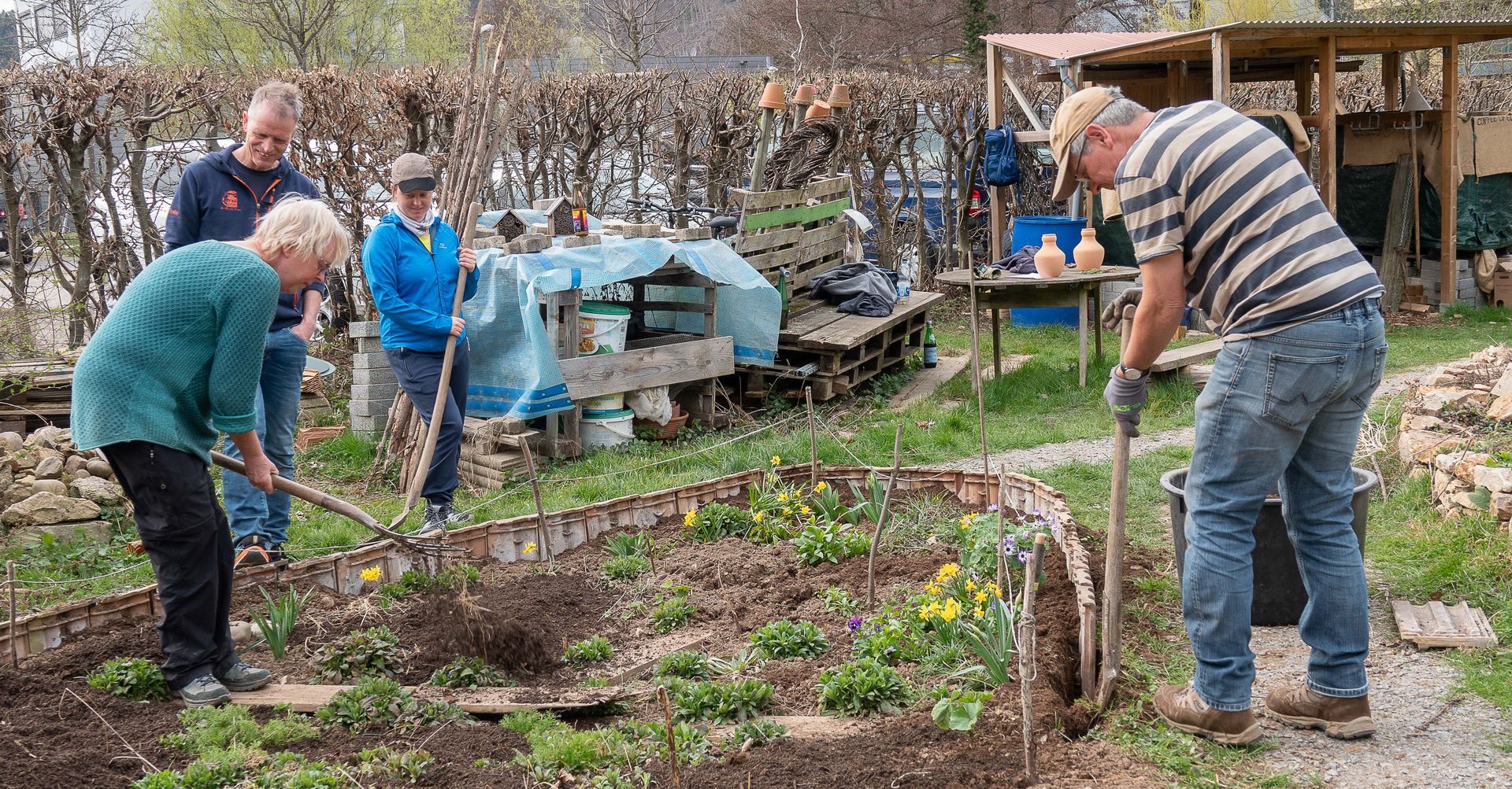 Die Freude am Gärtnern bei wundervollem Maiwetter steht den Gärtnerinnen ins Gesicht geschrieben :)