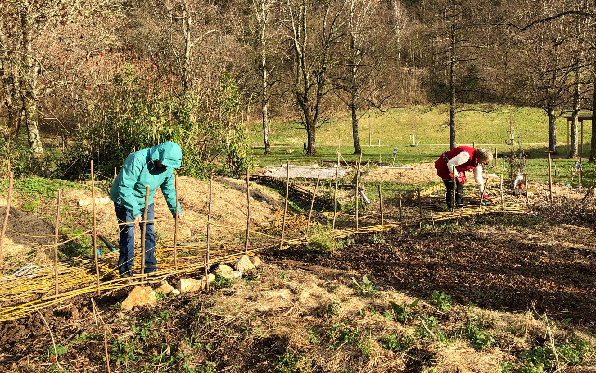 Der Buchholzer Bio-Winzer Berthold Nopper hat in einer wunderbaren Gemeinschaftsaktion vier unterschiedliche Rebsorten im Mitmach-Garten gepflanzt, das gesellige Verkosten seiner hervorragenden Bioweine und des Johanniter-Sektes inclusive. Wir sagen ein beschwingtes Dankeschön, lieber Berthold und liebe Neli!